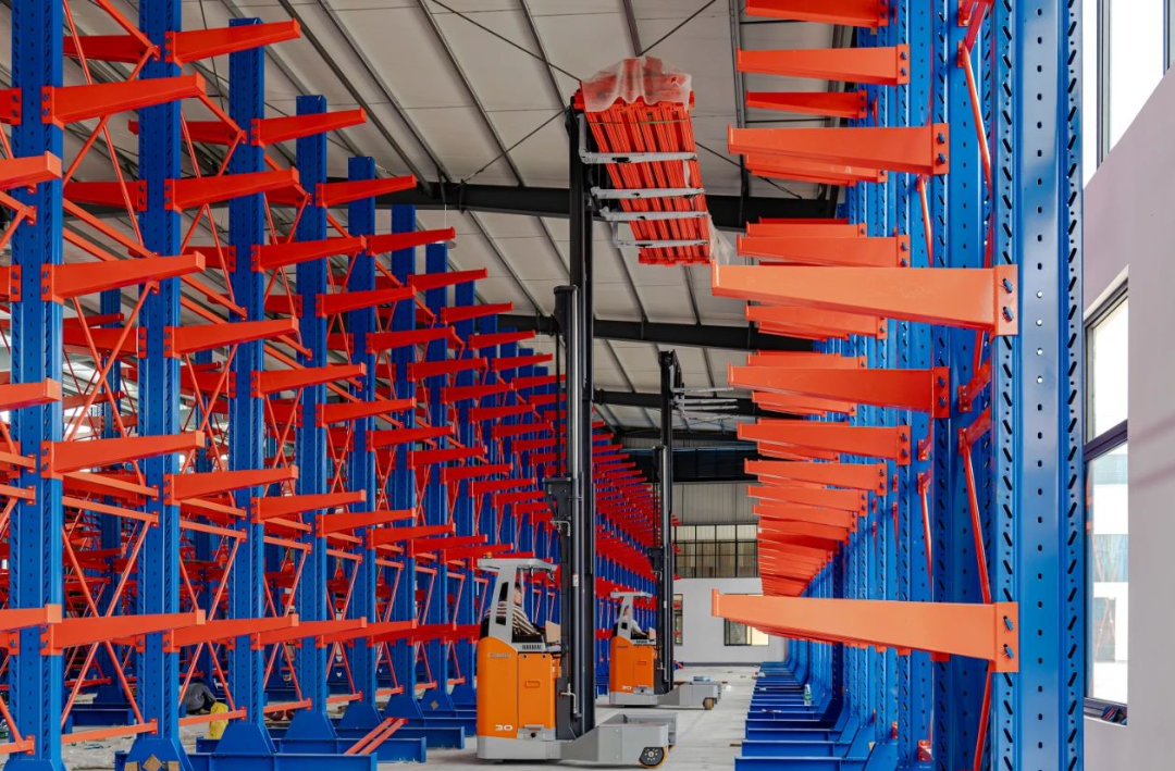 针对客户仓储混乱、库容量不足的问题,我司团队为客户重新规划仓储方案,建议引入长物料仓储专用的悬臂梁货架,货架高7m,根据卓一窄巷道方案来进行货架布局,有效减少了地面及垂直空间浪费,仓库库位成倍增加!