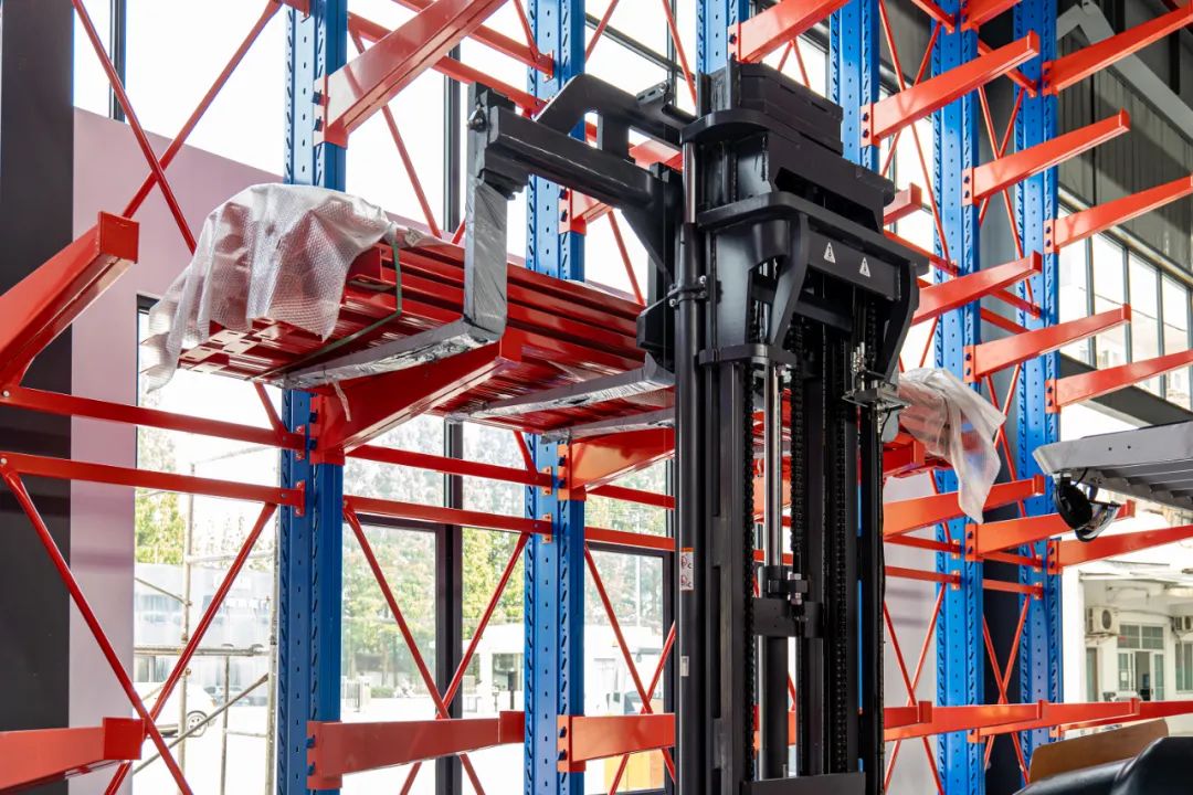 本次交付的全向车最大载重3T,门架采用“H”截面进口槽钢,抗扭、抗弯能力更强,轻松应对大吨位、高起升工况,单次可运输、堆垛多件铝型材,两台全向车同时作业,将为企业订单高效交付增添更多助力!