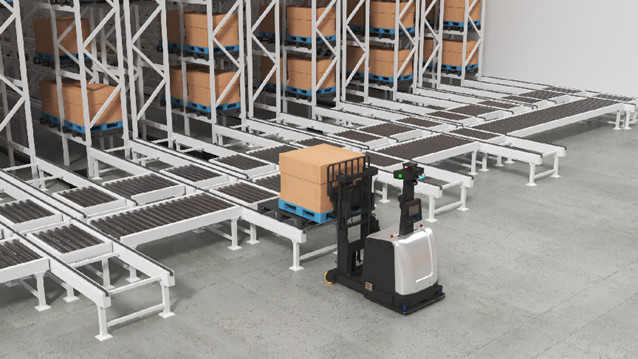 汽车行业原材料仓库和车间线边仓的物料转运多为自然堆叠密集存储场景,放货精度要求高,FP150采用了高实时端边协同感知系统,极大保证了货物自然堆叠的高效及稳定。