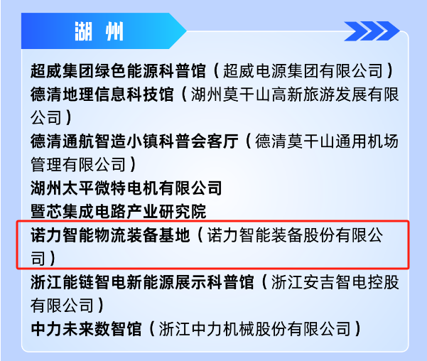 今日,省科协科普部、省科企新质生产力研究院公布首批浙江省新质生产力科普体验馆(点)认定名单,诺力智能物流装备基地榜上有名。