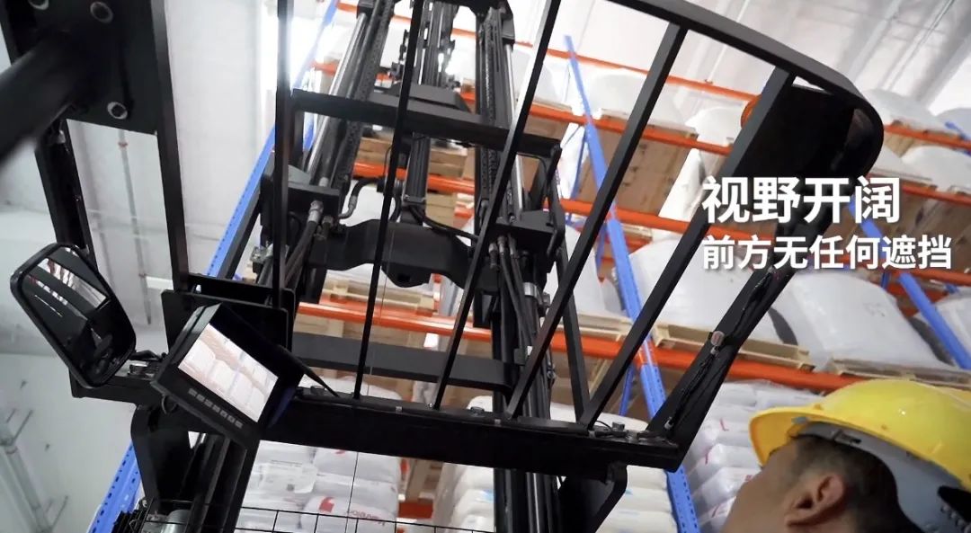 面对客户目前遇到的高位堆取视线容易受阻问题。RB35SD双伸位前移式叉车为高位作业提供了的开阔视野的车身设计。简洁的门架结构,合理的油缸油管排布,货叉匹配的鸭嘴式高清数字无线摄像头和实时电子屏显示,让司机能够实现精准地进行高位纵深存取。