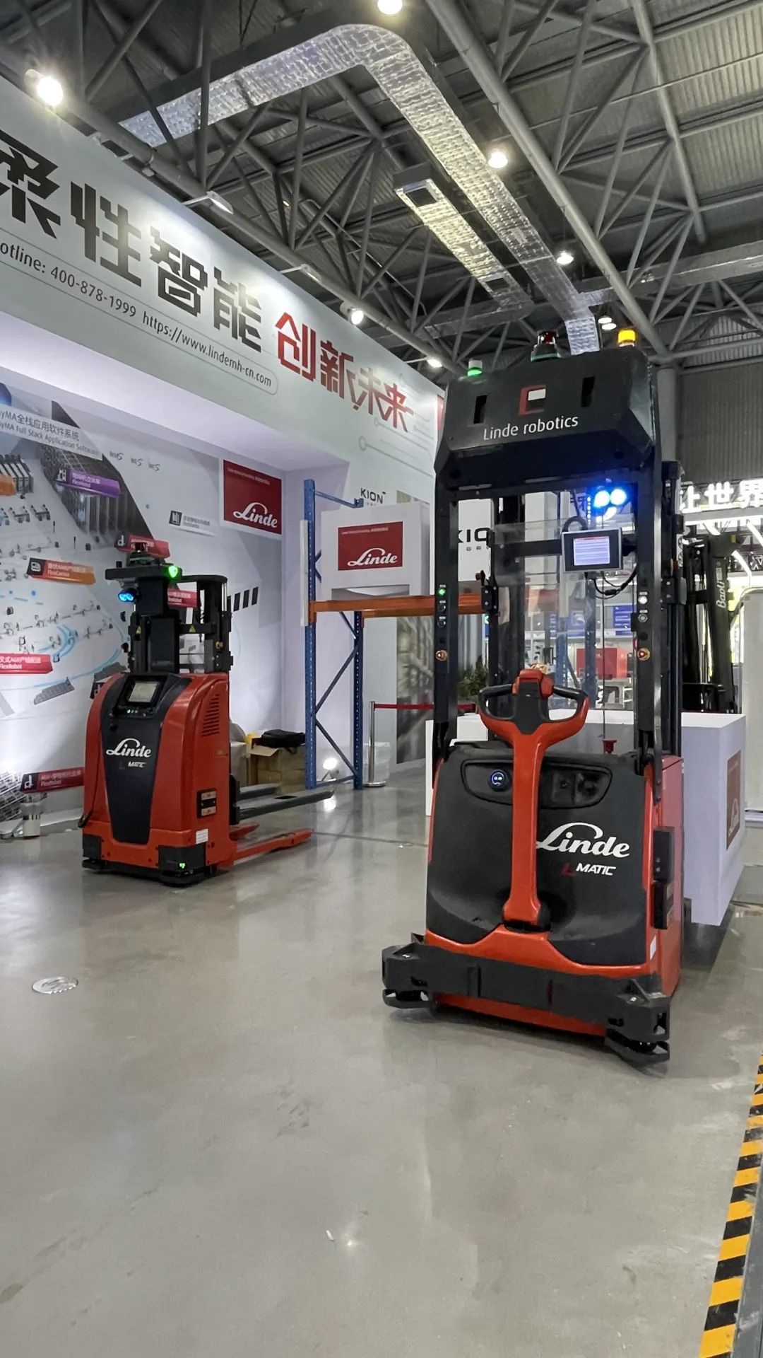 此次现场,还精心打造了自动化物流体验区,通过动态的场景演示与互动体验,让客户可以沉浸式感受智慧物流的科技魅力。此次演示的是林德紧凑型托盘搬运机器人和林德堆垛搬运机器人,具备高柔性、安全性、可靠性、易维护等特性,通过高精度的激光导航技术,可精准存取货物,自动匹配最优行驶路径,智能调度,符合Pld安全等级,能够高效有序的完成各种搬运任务,实现全天候自动化搬运作业。