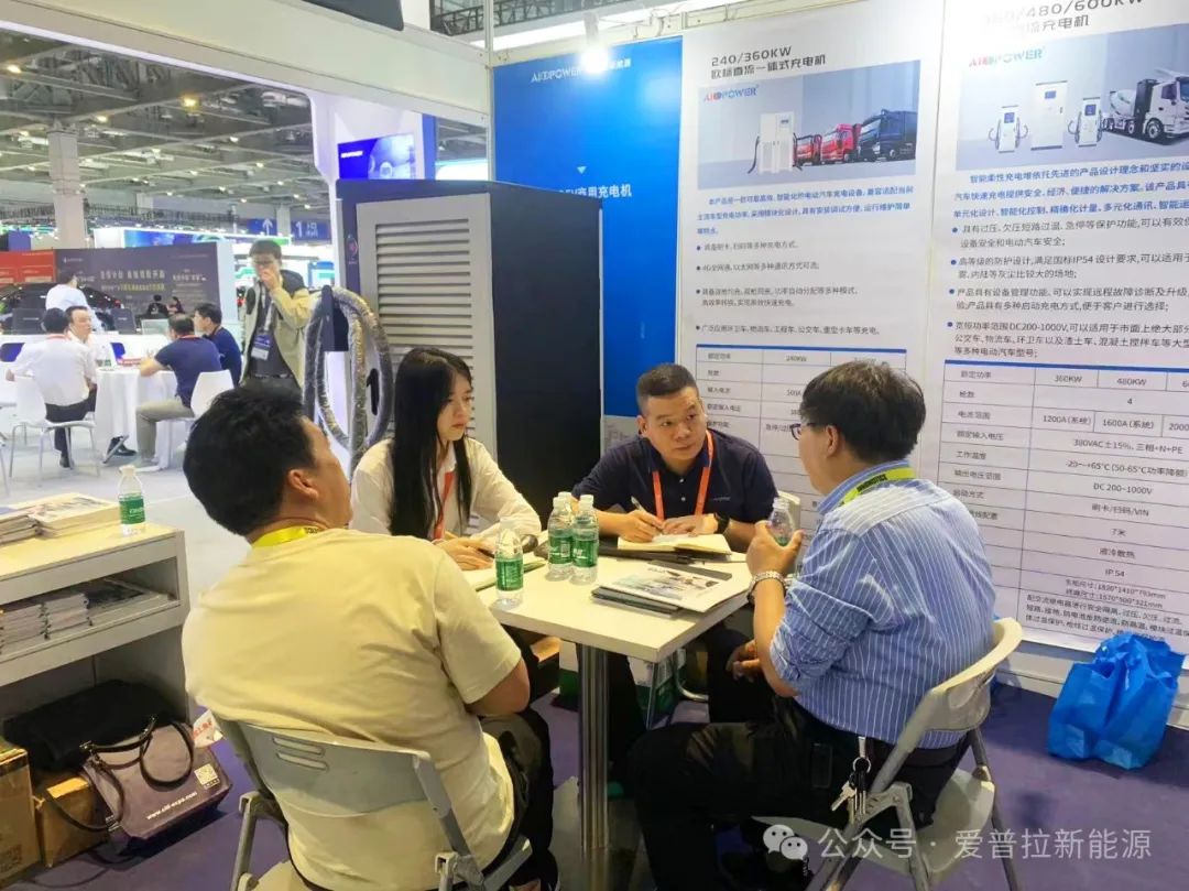 展会现场,爱普拉新能源展台人潮涌动,现场观众与客户接踵而至,行业专家纷纷驻足、交流、咨询,业务经理介绍演讲新品将现场的氛围推至高潮。以APHDEV商⽤充电机320KW直流快充产品为核心、结合液冷超充产品、欧标充电产品等区域,全面展示了爱普拉新能源充电解决方案的硬实力。其中,首次亮相的320KW直流快充高防护产品,以其工程机械重卡车的专用,专为锂而生,高防护,高防盐雾,耐腐蚀,安全稳定,迅速成为全场焦点。