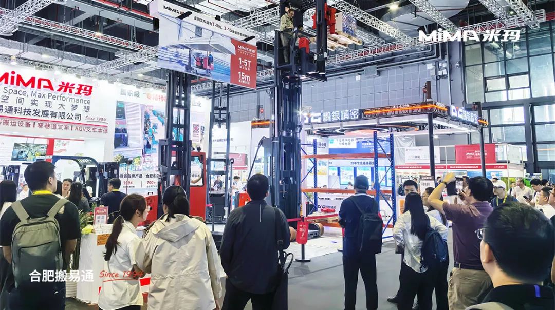 在合肥搬易通(MiMA米玛)的展位上还精心打造了动态演示区域,着重展示窄巷道叉车卓越的产品性能,让观众能够清晰直观地感受到MiMA米玛电动叉车的产品优势。