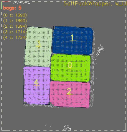 通过获取每个软包的位置信息,提供合理的抓取顺序规划。即使面对复杂的堆叠形态,系统也能确保每个软包被高效、安全地处理。
