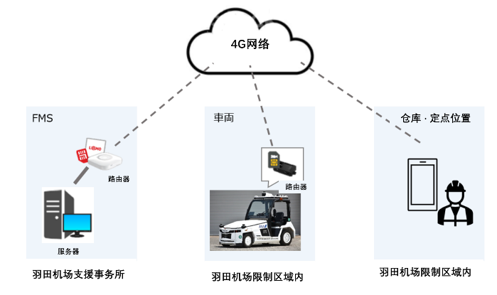 针对安全性更高的LEVEL4自动驾驶作业,搭载了可把握车辆周围情况的远程监控功能,迅速对应异常情况。为了实现高效运营,还全新开发了集机场和货物区域车辆调度指令管理、现场工作人员作业项目等信息为一体的车辆管理系统“Fleet Management System(以下简称FMS)”。