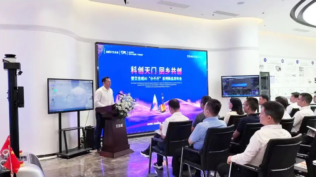 9月28日,艾吉威“科创天门·回乡共创”暨AI小千斤系列新品发布会在天门(武汉)离岸科创中心成功举办。天门市副市长杜人杰、天门市政府办副主任甘文涛、天门市经开区副主任吴磊、天门市马湾镇党委书记许俊波、天门市科技局局长夏齐飞、天门市经信局副局长吴郁民、天门市招商服务中心副主任麻欣宇、天门市兴盛投资公司副总经理滕聪明、武汉科技大学资源与环境工程学院党委书记刘运显教授、海通证券投行董事总经理洪晓辉、艾吉威联合创始人&董事长司秀芬博士、艾吉威创始人&总裁刘胜明博士等相关领导及众多媒体记者、合作伙伴、员工代表共同出席发布会。