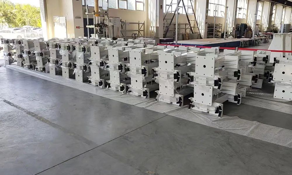 新松车间内,数百套缓存架设备、对接站台静待发货▼