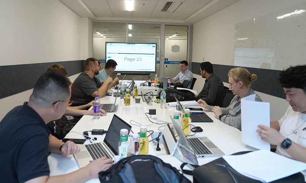 在项目推进过程中,新松团队一面要与客户中、日、英、法四国团队沟通项目方案,基于在新能源领域丰富的项目执行经验为客户提供技术借鉴;一面要与来自中、日、德、韩等多国的数十个主机设备和现场第三方供应商持续对接工艺细节,为项目高效稳定实施提供坚实保障;同时还要按照项目周期,抢工推进多类产品的设计、加工、制造工作,并对应不同工艺环节开展多线同步调试,展现出了强大的统筹力和战斗力!