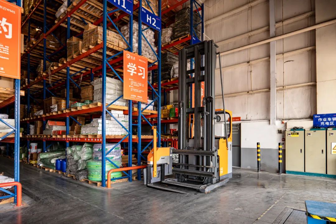 行驶速度快、最大载重1.6吨的人下行三向车凭借强大的搬运运输能力,实现了成垛高重量货物的快速搬运,减轻了工作人员的负担、提高了订单处理效率,整体物流效率显著提升。