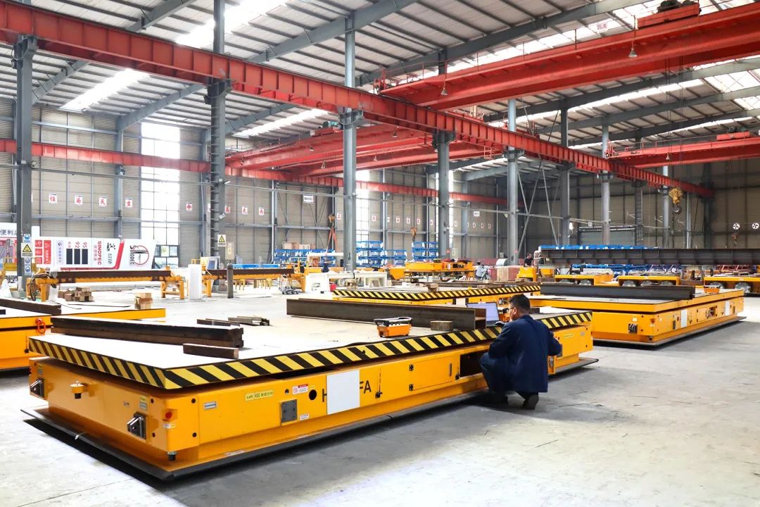 记者在企业车间看到,一台标识承载400吨的重载运输车正在调试,与其它的运输车不同,该车车身高度不到50厘米。“超低型的运输车是我们今年下半年才开发出来的,它的主要特点是超低高度的底盘设计,具有超大的负载能力,搬运大体积工件时,具备良好的抗倾覆能力,可以替代原有气垫悬浮搬运车。目前,我们收到6台300吨以上的订单,已经实现了首台的交付。”周林榛介绍,该运输车相比于气垫悬浮搬运车,不仅坚固耐用,并且客户厂区的基础投入也会极大降低。