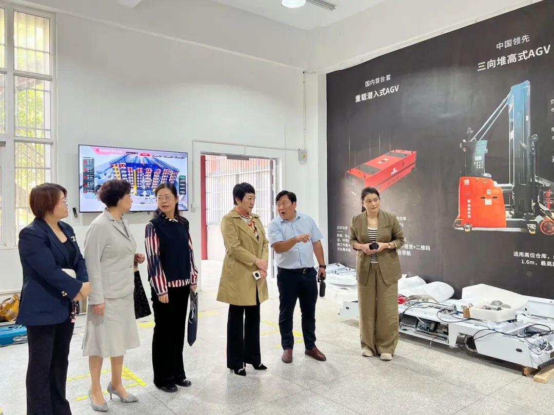 王越会长一行首先参观了焕智科技的研发车间,副总经理姜新军详细介绍了焕智科技在智能物流仓储领域的核心技术、研发流程以及产品创新状况。通过观看搬运机器人的现场演示,王越会长一行对焕智科技的技术实力和应用场景形成了直观且深刻的认识。此外,她们还全面了解了公司的发展历程、市场布局以及未来发展规划等重要内容。