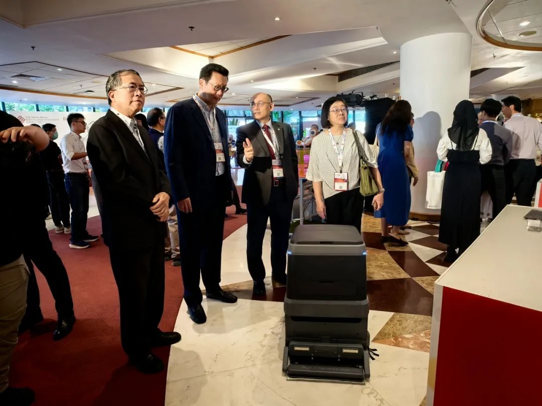 香港理工大学酒店及旅游业管理学院副院长宋海岩教授(右2)与嘉宾讨论复合多态机器人「UP」的价值