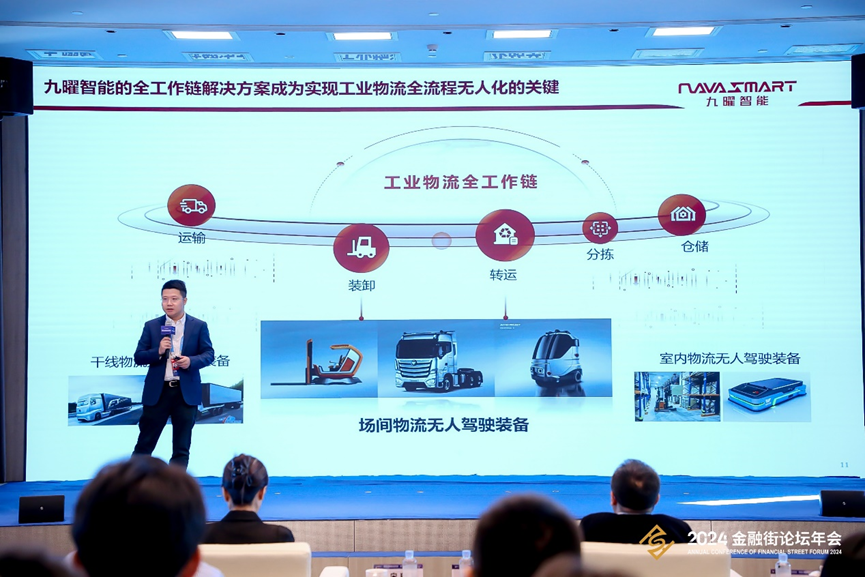 此次专场活动聚焦新质生产力的发展,通过科技创新手段,助力具有独角兽潜力的企业加速成长,同时汇聚了政府领导、金融机构代表、创投专家及多家科技创新企业,共同探讨如何通过科技创新推动产业转型升级,培育新质生产力。九曜智能从几百家创新企业中脱颖而出,最终作为5家优秀企业之一受邀出席了此次活动,并分享了“工业无人驾驶应用成果”——《全球领先的工业级L4无人驾驶场间物流全工作链解决方案》,受到与会代表的广泛关注。