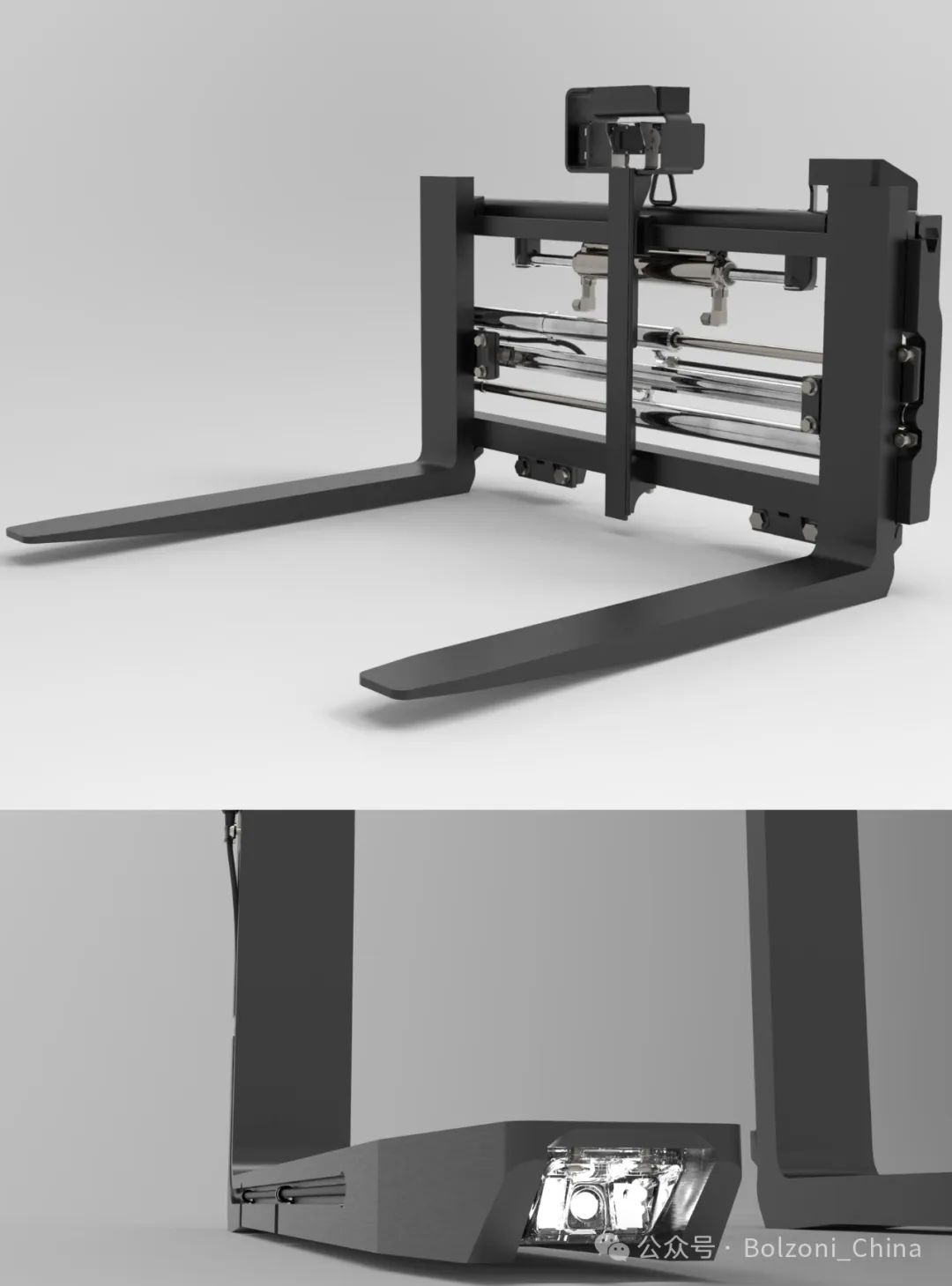作为Easy-Connect系列的一员,全电动驱动的调距叉配备了电动执行器,能够根据搬运的货物精确定位货叉。安装在属具上的一整套传感器支持AGV在生产车间和货物仓储流程中完成不同的任务。博索尼(BOLZONI)集团可为AGV 厂商设计配备传感器和电缆的即插即用定制方案。