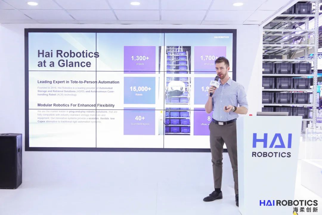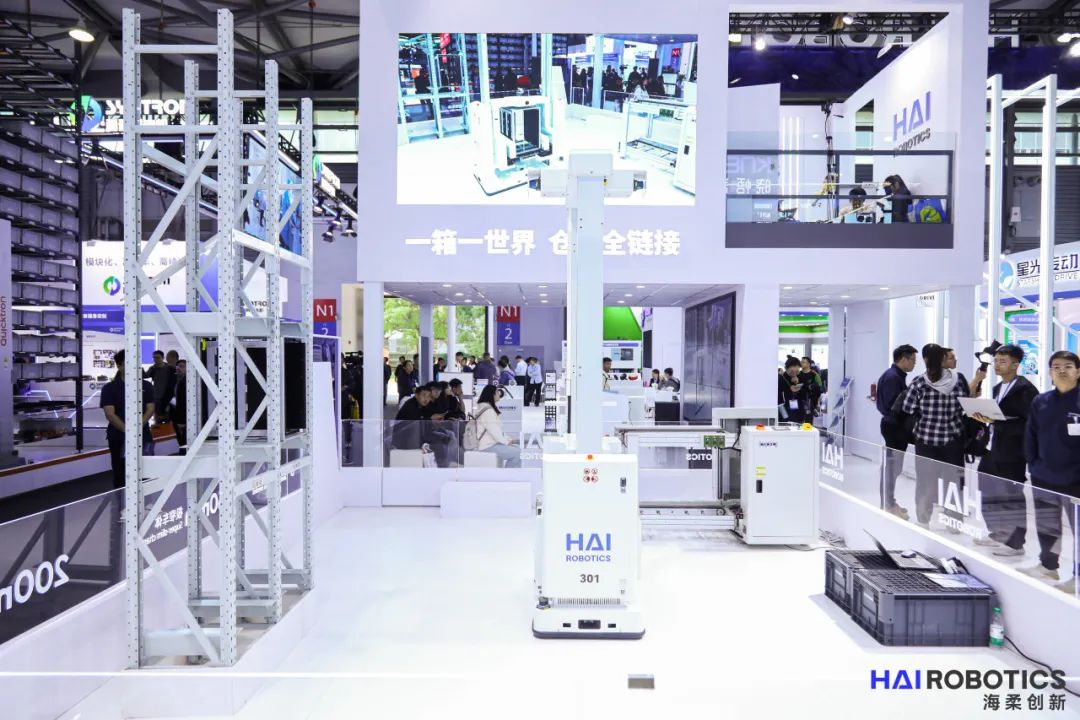 在本次展会中,海柔创新展位分为四大模块——HaiPick System 3展示区、电子车间柔性物流解决方案、线上数字展厅体验区、数智物流主题演讲区,以产品展示、动态交互、行业专家中英文主题演讲、联合打卡等环节,为到场观众提供多样的参展体验。