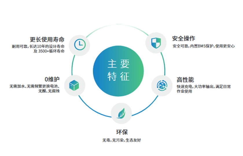 · 密封装置设计确保电池不会释放任何有害排放物,保护环境。