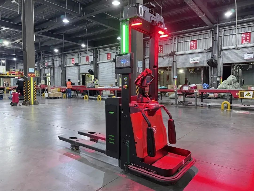 当快递在分拨中心完成分拣后,需要从传输带档口被送到装货点,再送到各网点。今年双11,山西顺丰在分拨场地投放了两台AGV(智能搬运机器人),大幅提高了效率。只见,小家伙灵活穿梭在场内,可自动识别线路,“搬”起货物,再运到指定地点。全程不用人工帮忙。