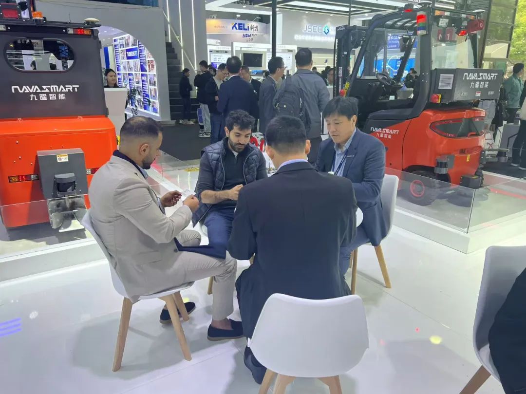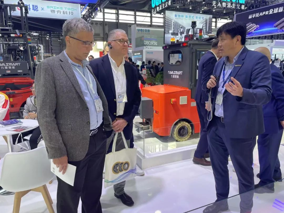 CeMAT展会现场,九曜智能接待了包括西班牙、法国、意大利、沙特、阿联酋等欧美及中东客户,对工业无人驾驶产品的强烈需求远超想象,采购及代理需求非常旺盛。