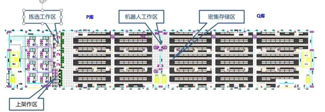 ◆创新技术:采用大小不同的AGV车辆组合,配合吸盘式料盒进行全自动上架及拣货操作。