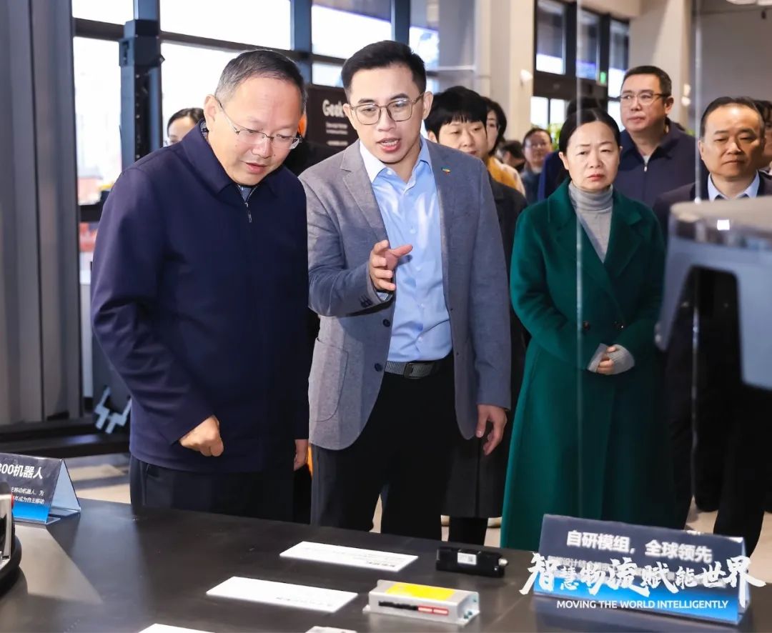 ▲庐江县委书记许华为等一行参观极智嘉合肥制造基地
