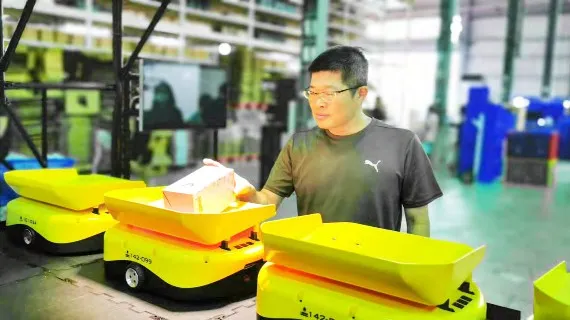 该项目创新性地采用了立镖自创的“订单到人”(OTP)分拣模式:机器人将承载盒子送至包裹工作台,工作人员将订单物品放入纸箱中,完成后“小黄人”会自动将纸箱送至传送带进行打包。此模式有效避免了化妆品在分拣过程中的易碎风险,同时提升了订单处理效率和准确性。