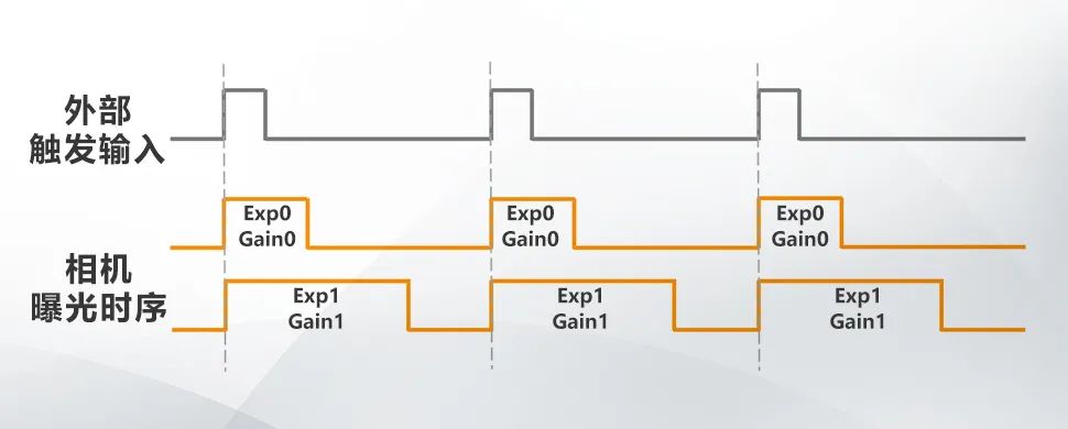 相机支持多重曝光功能(Multi Exposure),可支持自定义设置2组曝光时间及增益,适用于明暗场的检测场景。