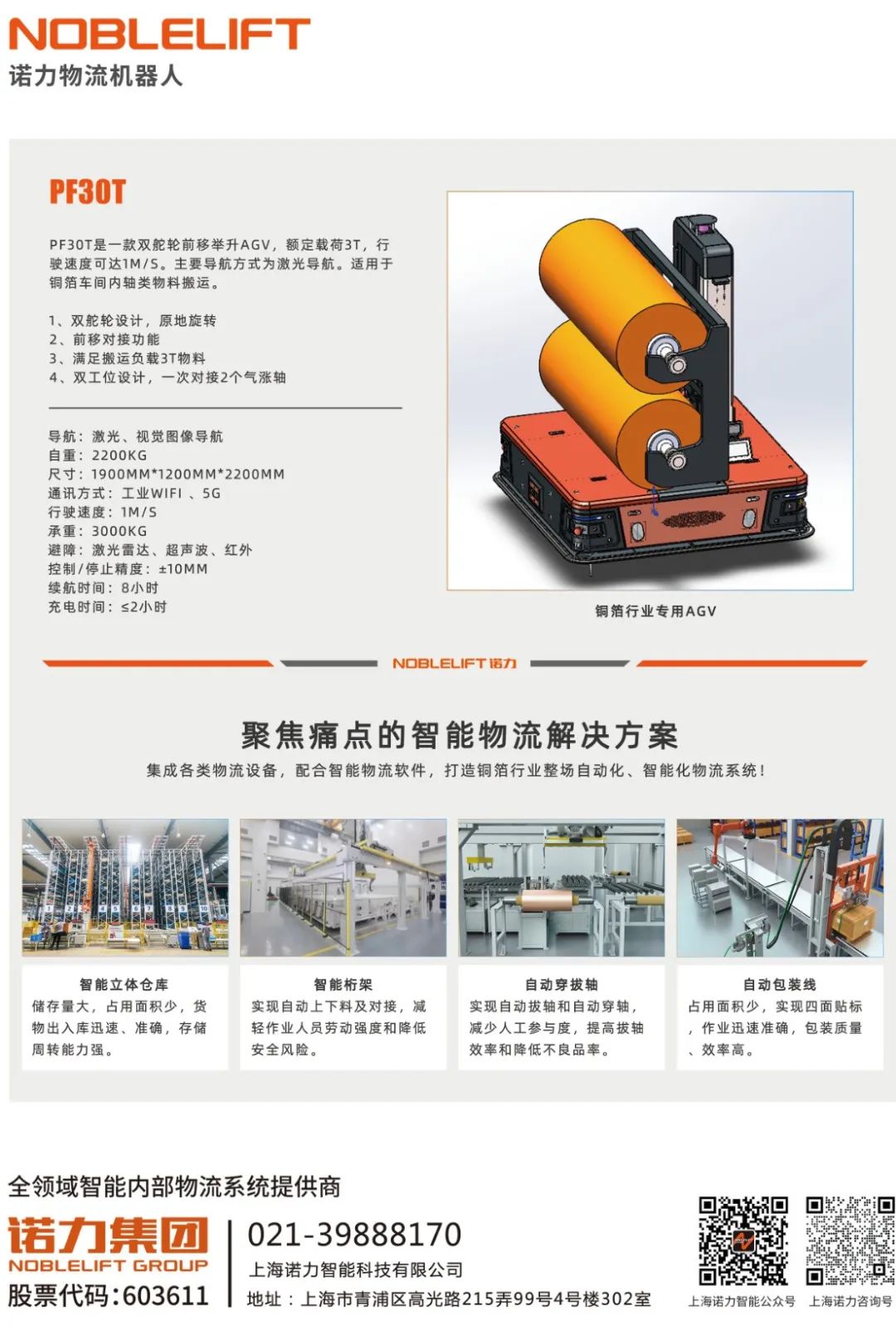 近年来上海诺力智能依托诺力集团围绕物料搬运和物流集成两大板块具备的强大技术实力和丰富项目经验,发挥自身高科技企业的技术优势,将打通铜箔制造全流程的物流机器人和串联铜箔制造全环节的物流管控软件融会贯通并应用到企业智能化工厂的建设中。在铜箔生产生箔设备卷料配送、烘烤设备卷料配送、分切设备卷料配送、铜箔轴卷自动穿轴、箔卷成品自动装箱和铜箔成品立体仓储六大环节创新性的改善了生产制造、物料搬运和包装仓储的模式。有效提升了生产设备的物流自动化智能化装备水平,极大减轻了产线工人的劳动强度,完美实现了生产过程数据实时采集实时监控和充分提高了立体仓储的库位周转利用率,让生产制造更智能、设备对接更精准、过程数据更真实、仓储管理更高效。