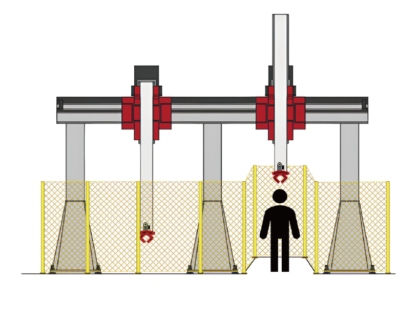 以物料搬运的X-Z龙门机器人为例,操作人员有时需要接近机械手以进行工具更换、维护或清洁。为防止机械臂意外撞击,需采取安全措施。这需要双安全制动抱闸,安全转矩关闭 (STO) 激活或断电时,安全制动控制 (SBC) 负责轴定位。驱动器维护时若需运行,安全操作停止 (SOS) 不可或缺。当遇Z轴异动时则触发STO,继而激活SBC。