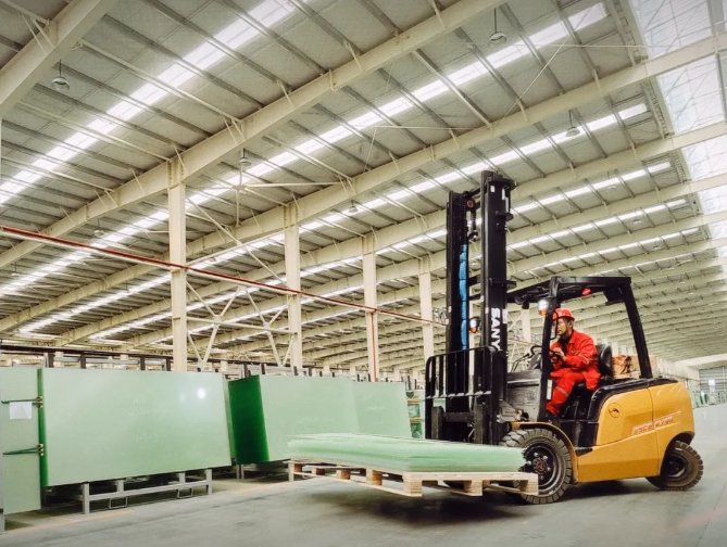 各类玻璃的原料及成品快速转运,需要借助叉车来完成搬运。在矿产资源丰富的黔东南州某大型玻璃厂内,一批三一SCPC6系列高压锂电平衡重叉车正在不分昼夜地进行物料搬运,助力客户快速、高效达成生产指标。