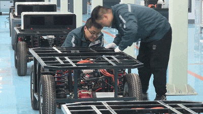 在戨达(徐州)新能源装备有限公司的移动储能充电车生产线上,无人驾驶模块安装检测,航吊、雷达、充放电模块安装,螺丝固定等工序有序进行,经最终检测后迎来下线。