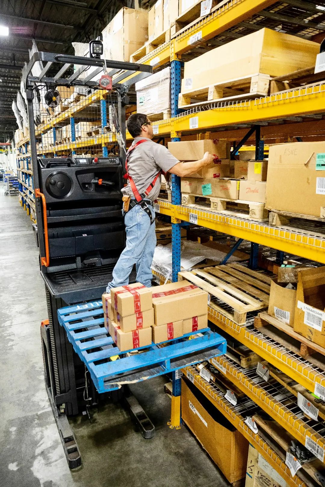 该车在处理种类繁多、数量庞大的配件,以及应对那些不稳定且难以预估的需求时,起到了关键作用。林德电动拣选叉车性能出众,可在1200mm超窄通道内灵活穿梭,轻松完成货物的拣选、盘点等工作。