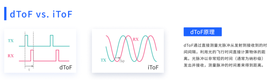 dToF(直接飞行时间)与iToF(间接飞行时间)各有其独特的优势。dToF凭借快速测距和抗干扰能力,更适合中远距离的复杂场景;而iToF则在近距离高精度识别中表现优异,适合5米内的检测应用。迈尔微视充分结合这两项技术的优点,为不同场景提供更精确、高效的距离感知解决方案。