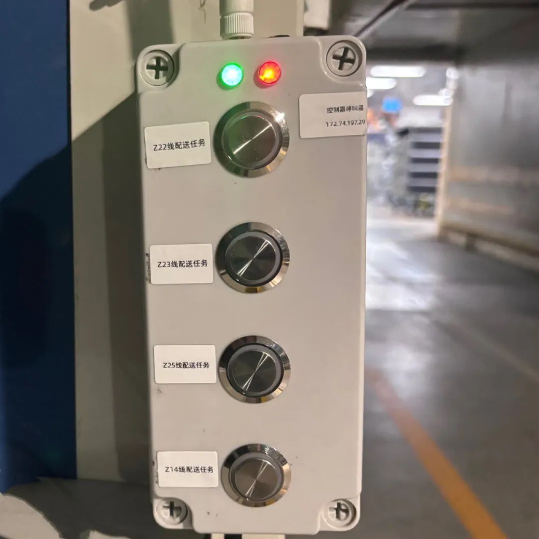 初期在总装Z22线已经成功实现单台激光导航AGV配送电器盒到线边项目,因此陆续规划通过多台AGV配送Z14/Z23/Z25等多条线、多车间、多区域的目标。从自主设计研发到组装以及现场部署验证,来实现对整体车间内电器盒配送的升级。只需通过呼叫器按钮下单任务,AGV小车直接配送至生产线线边,并将空车同步返回,完成全流程自动脱钩、自动避让、自动充电。