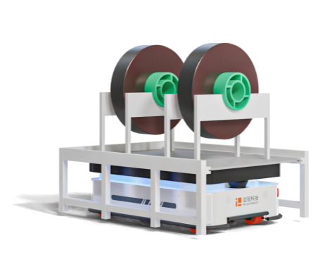用户现场辊分完成后,料卷下放到备用料箱,潜伏举升AMR根据指令到达任务点,实现料箱空满交换;再通过自主穿越卷帘门、风淋门,乘坐电梯,经由车间内及局外部走廊,将满料盘搬运至B4三楼指定工位,并将任务执行情况实时反馈给MES系统。