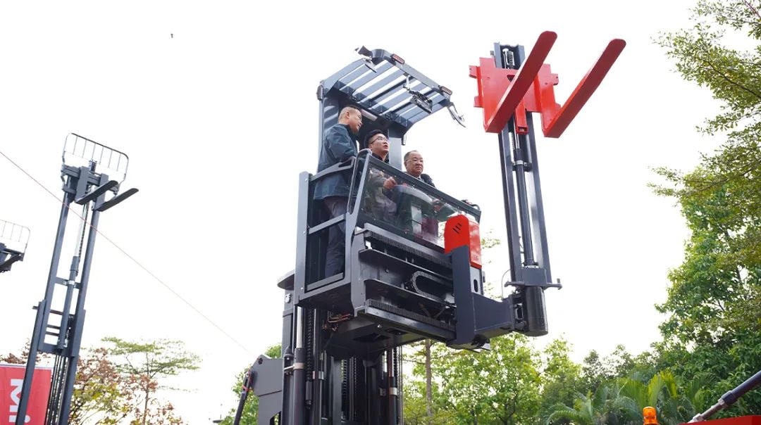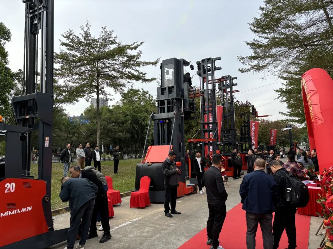 现场精心规划的产品展示区,全面展示了MiMA全系列电动叉车,包括三向堆垛车、全向叉车及铰接式叉车等。专业销售团队不仅向现场客户热情介绍产品特点与优势,还安排试乘试驾,让嘉宾亲身体验其高效性能,现场互动频繁,气氛热烈。