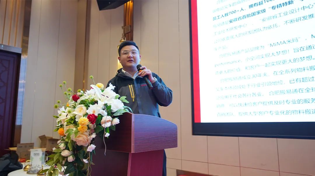 在酒店宣讲环节,合肥搬易通广州营销服务中心负责人侯杰介绍了公司的企业规模、发展历程、全系列物料搬运设备以及超窄通道产品,并表明未来团队将不断深化对市场动态与客户需求的洞察,提升服务质量,力求全方位满足客户物料搬运需求。