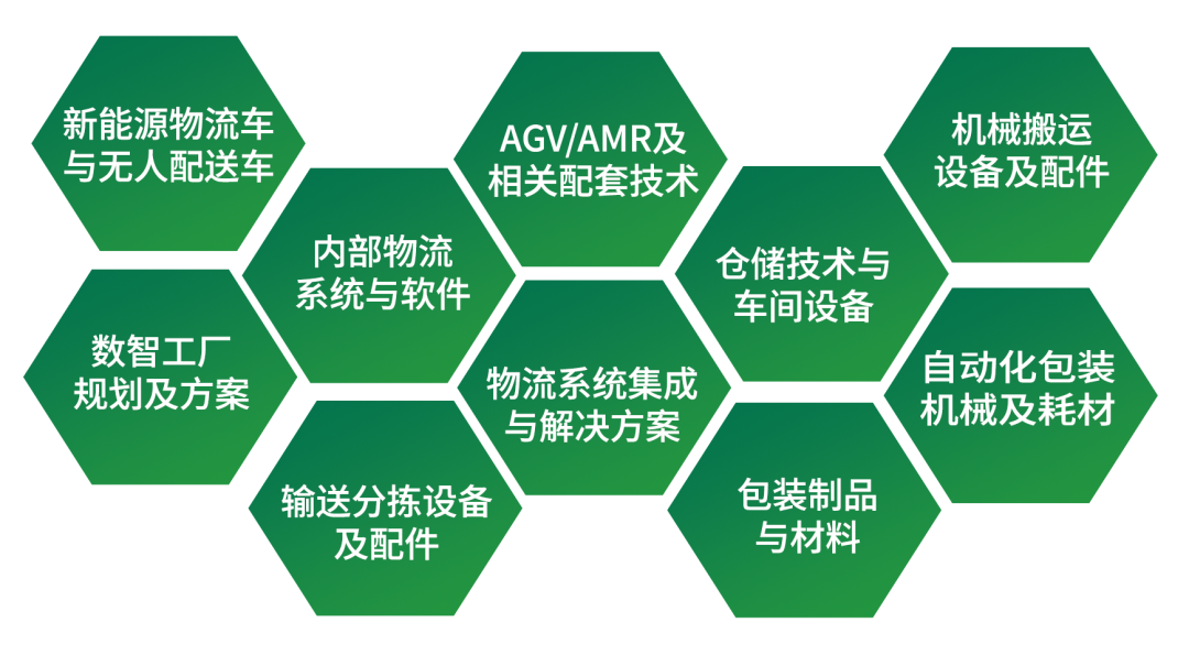 围绕 数智工厂、柔性制造、产线自动化、仓储智能化、供应链智慧物流以及机器人技术应用 这六大主题类目进行展示,为用户提供从生产端到仓储端,再由仓储端到配送端、零售端的自动化设备全流程解决方案的协同应用。