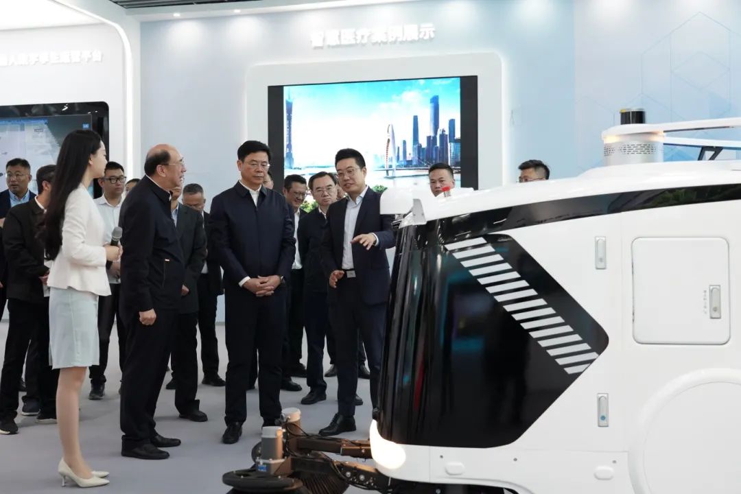 在展厅的动态演示区,陈涛市长一行观看了配送机器人任务下单、响应、配送及卸货的全流程演示。李良源为陈涛市长介绍了医院全场景物流配送解决方案。该方案聚焦于医院运营痛点,通过建立医院物流系统的数字模型,实现全院“无人值守”的物资末端供应和院感管控,全方位重塑医院后勤保障生态。