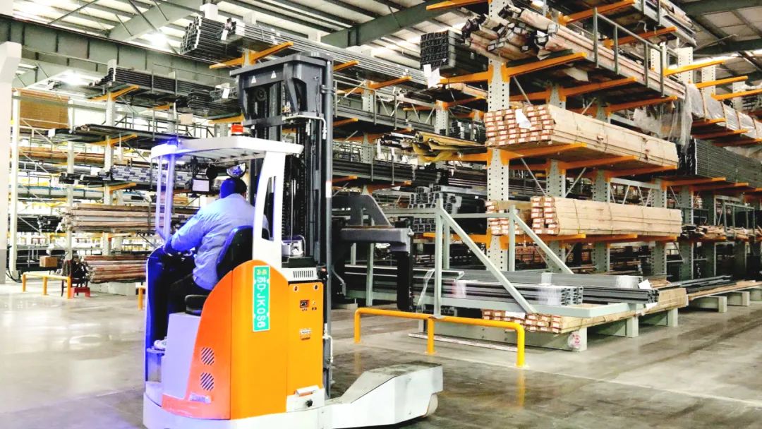 卓一全向叉车采用了三个独立的转向控制器,侧行、斜行、原地回转等六种行驶模式一键快速切换,通过旋转换向能够适应各类复杂工况,在狭窄空间、通道中轻松完成长度10m内铝型材的转运堆垛,客户在生产、仓储和配送环节的物流效率获得显著提升。