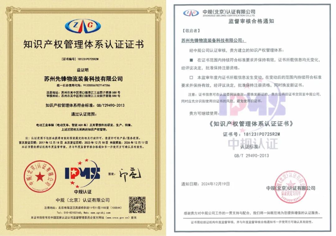 顺利通过本次知识产权管理体系年度监督审核,是对卓一智能叉车知识产权管理体系在研发、资材、品保、销售、财务、市场等各个部门运行有效性、规范性的充分肯定。卓一智能叉车也将进一步规范知识产权管理工作、健全知识产权管理体系,增强自主创新实力,发挥知识产权对技术创新的保障作用,促进知识产权与企业发展深度融合,有效提高企业的创新和可持续发展能力!