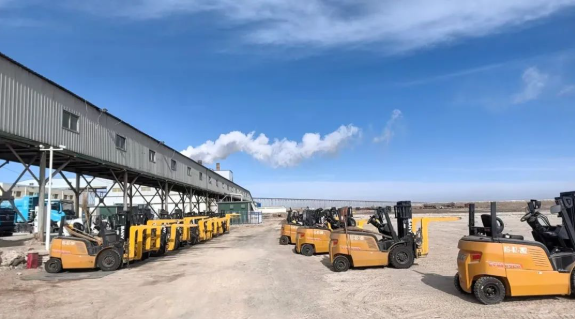 该公司所处的格尔木地区盐湖资源丰富,盐水、强碱性土壤以及恶劣气候条件,使叉车作业环境存在高盐、高碱和温差悬殊等难题。三一电动叉车具备 IP67 防护等级,能够轻松应对各类极端工况。