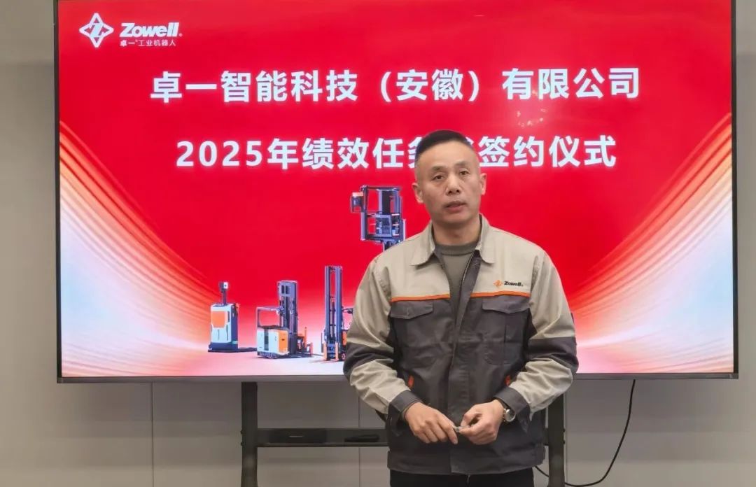 会议最后的环节中,制造副总、营销副总分别发表讲话,对各自负责的领域提出了期望和要求,也表达了将全力以赴带领团队完成年度绩效任务的决心。会议的最后,卓一智能叉车总经理做了最终总结发言。他表示:2024年,公司在经营管理、生产制造、品质管控等都上了一个新的台阶。这一年,有机遇也有挑战,但可喜的是卓一顶住了压力,持续了连续多年的高增长率的发展态势。而随着专业管理人才的引进、人才梯度建设持续输入和生产制造的智能数字化升级,配以坚定不移的产品战略的正确方向,相信,2025年,卓一又将迎来自身发展里程碑式的一年。