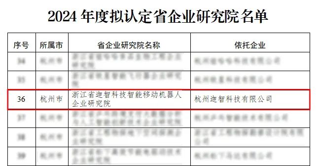 省经信厅公布的2024年度省级企业研究院认定名单,浙江省迦智科技智能移动机器人企业研究院榜上有名。