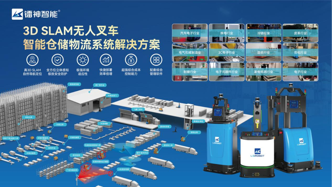 为了满足不同行业不同场景的应用需求,镭神智能还打造了齐全的3D SLAM无人叉车产品矩阵,室外/室内平衡重式3D SLAM无人叉车、搬运式3D SLAM无人叉车、堆垛式3D SLAM无人叉车、前移式3D SLAM无人叉车、三向叉式3D SLAM无人叉车、3D SLAM AMR等整机产品。
