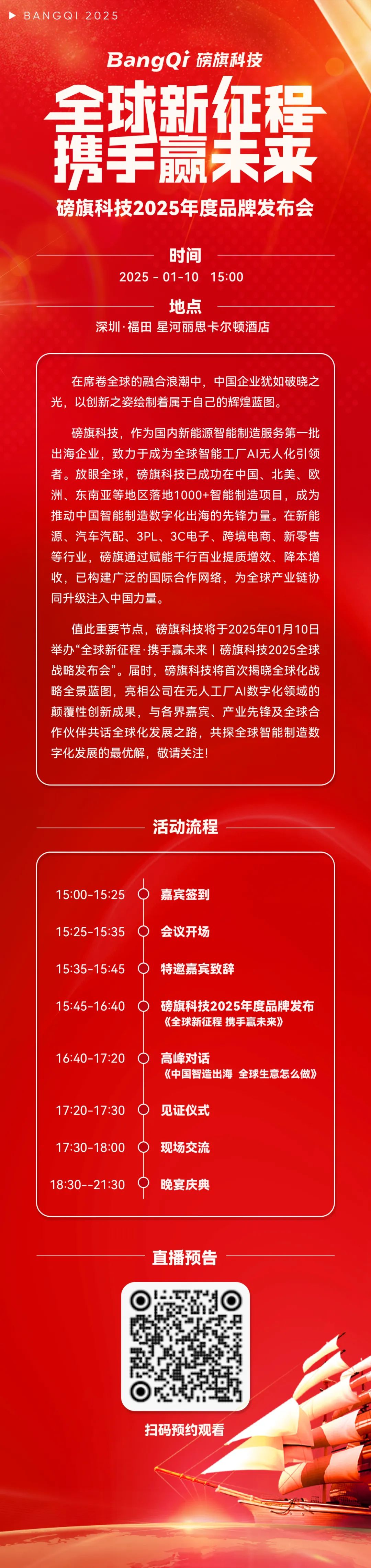深圳市磅旗科技智能发展有限公司成立于2013年,注册资本5000万,是一家为智能制造数字中台为核心,构建智慧工厂全域物联网平台,提供全栈式软硬一体从仓储物流到产线物流、线边物流的全场景全流程自动化数字化物流整体解决方案。