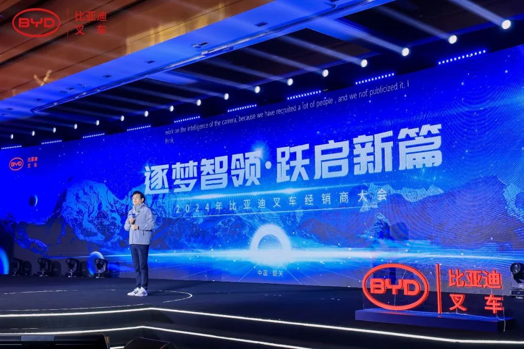 1月9日,以“逐梦智领,跃启新篇”为主题的2024年比亚迪叉车经销商大会在广东韶关召开。比亚迪第十八事业部总经理毕国忠先生携事业部高层领导,以及全国各地的优秀经销商代表、行业协会、媒体朋友们欢聚一堂,共谱新能源叉车发展的新蓝图。