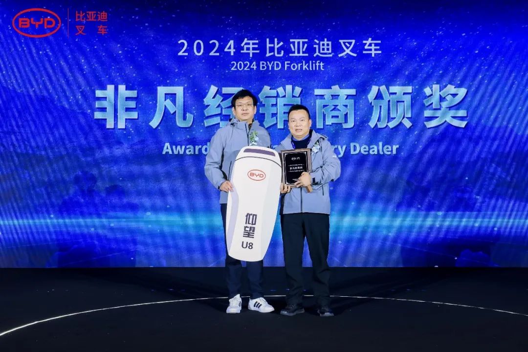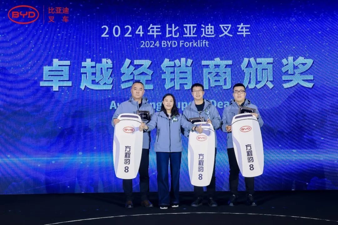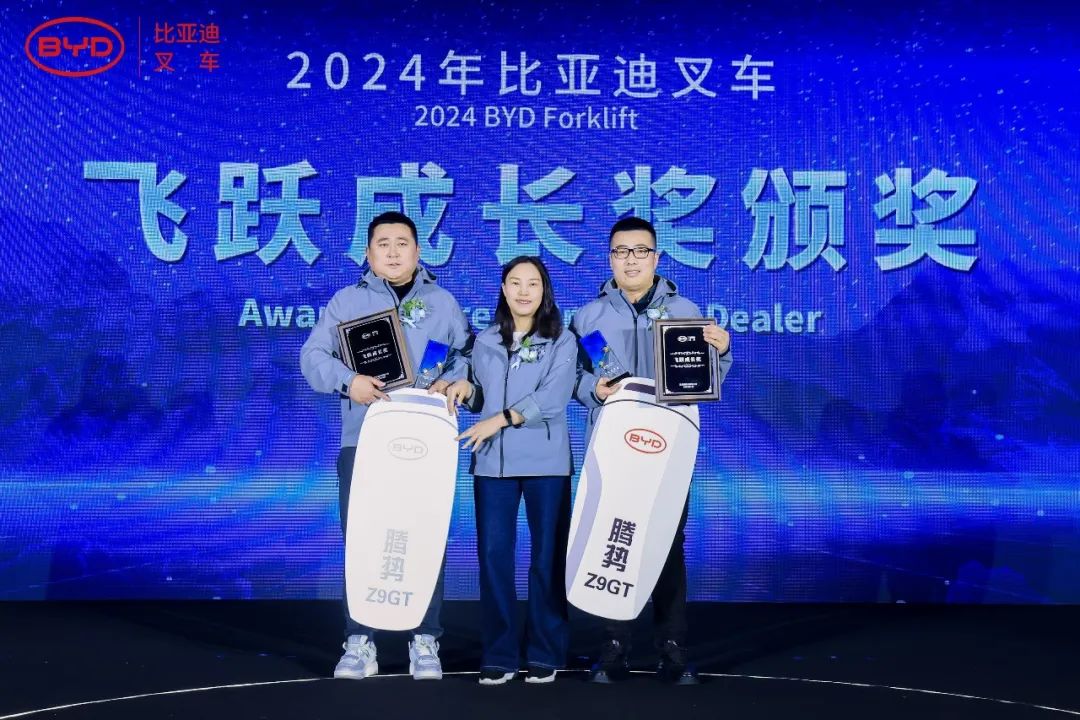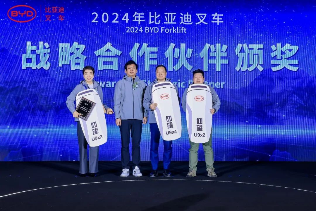 不辞青山、相随与共,在2024年比亚迪叉车发展的道路上,我们得益于自身的不懈努力,也离不开伙伴们齐心协力克万难,为新能源叉车行业的发展提供了强有力的支撑,此次大会比亚迪叉车特授予广州佛朗斯股份有限公司、武汉世恒机械设备有限公司,山东景林绿色生态发展有限公司战略合作伙伴奖。