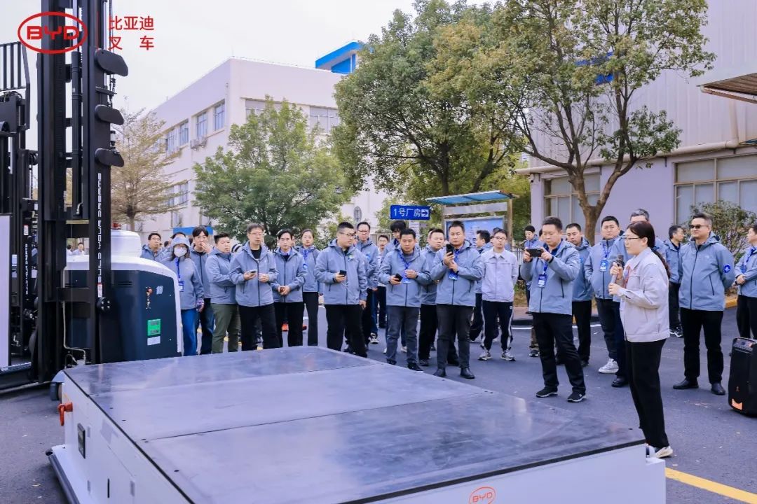 当日下午,与会人员统一参观了比亚迪叉车韶关工业园区,现场完善的产品矩阵及详尽的介绍给大家留下了深刻的印象。