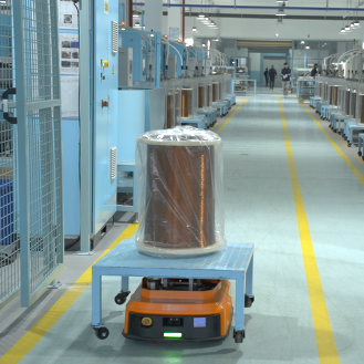 除了3D视觉、2D视觉等机器视觉智能设备之外,创兴电机还引入了多台海康机器人的潜伏、叉取机器人及RCS机器人控制系统,自动化搬运成品定/转子组件及组装配件、漆包线、高温铝水等物料。